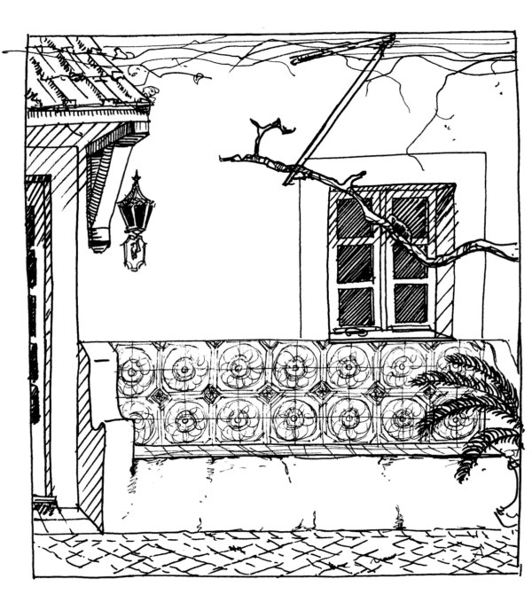 Les azuleios ont certainement influé sur le choix d'encadrer les croquis dans un cerne noir marqué...comme des carreaux.
