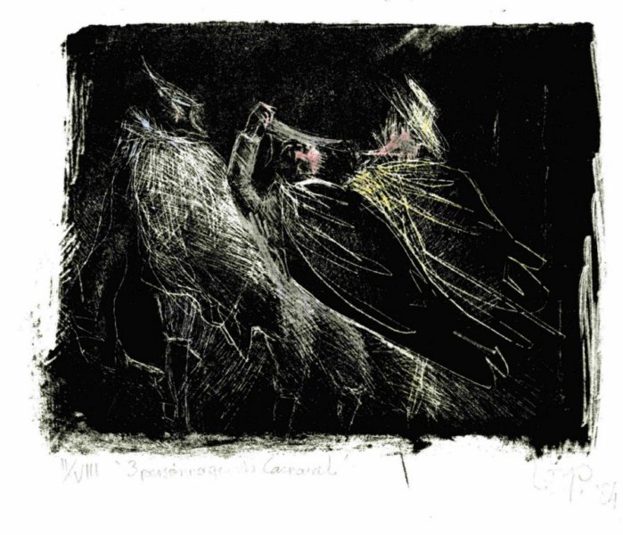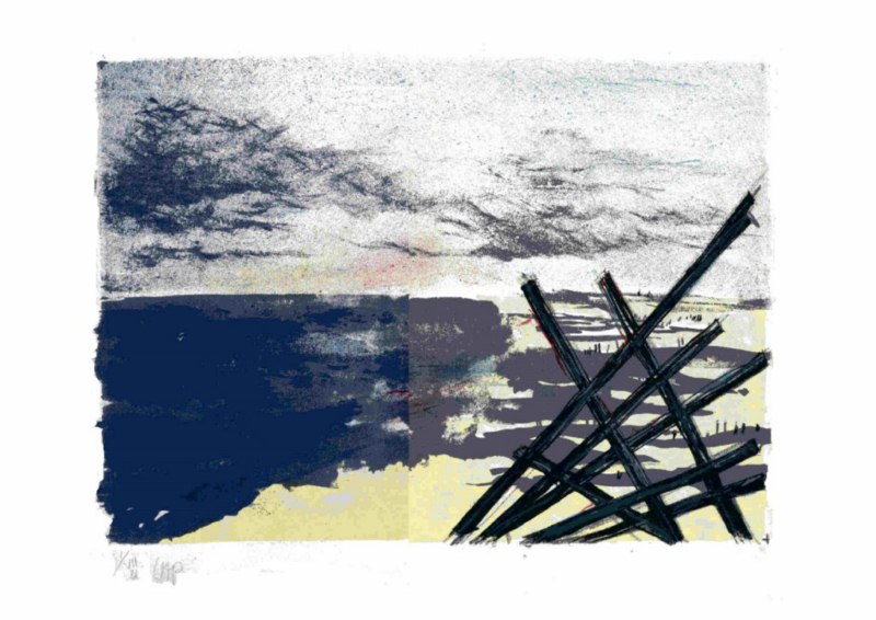 La grève 1985:Tirage cinq couleurs :jaune ,gris, bleu foncé,et noir, rouge .