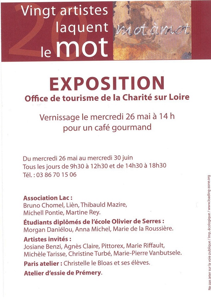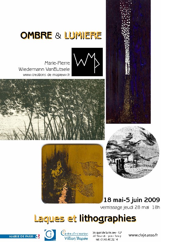 Deux expressions extrêmement précises et techniques qui au de la de leurs différences se retrouvent pour exalter l’éclat de la lumière ou des reflets et le velouté ou la profondeur du Noir. En gravure, la superposition de couches de gravure, de morsures jouent avec les « non- dits »et la transparence des encres ; en laque les usures, gravures et reflets répondent aux inclusions de matières précieuses (feuilles d’or, d’argent, nacres, os..) et aux nombreuses couches de vernis pigmentés. Mon seul regret, du à la laque : on ne touche pas normalement les gravures !!! L'encre imprimée renvoie toutes les nuances que l'on met sur les plaques gravées ,creux, reliefs en matières, au trait ...tout cela vibrerait doucement sous le doigt . Mais vos yeux sauront retrouver toutes ces vibrations dans les tirages !... plus d'infos sur l'association Claje et ses activités (j'y investis mon bénévolat !) claje.asso.fr En actualité expo 2012 Janvier : expo de laques dans un sympathique bar à vin du Quartier du Marais à Paris Le Juls'café 20 rue du platre 75004 PARIS ![]() En actualité expo 2011 : PORTES OUVERTES ATELIERS D'ARTISTES DU 12ème ![]() LE FESTIVAL DU MOT 26 au 30 mai 2010 puis juin à la CHARITE SUR LOIRE (58) accueille 20 laqueurs en exposition ... au syndicat d'initiative et en rue principale ... l'expo est prolongée au dela du festival jusque fin juin 2010 ![]() ![]() et en plus voir le programme du festival ou aller sur le site du festival : www.festivaldumot.fr MARS 2010: le plaisir d'une expo collective d'atelier : Exposition de gravures organisée par le prof de gravure de "mon atelier" du mardi (Atelier de Paris = ex ADAC): Nicolas Sochos graveur taille doucier au 24 bis de la rue Gassendi PARIS XIV du 5 au 26 mars 2010 JUIN2009 exposition au Centre d'animation Villiot-Rapée : du 18 mai 2009 au 5 juin 2009 de LAQUES et LITHOGRAPHIES(sur pierre)prolongée jusqu'au 12 juin le centre se situe au 36 quai de la rapée Paris 12 ème juste derrière la gare de lyon en prenant soit la rue VanGogh soit la rue villiot coté Seine ... plan par l'accueil Pour avoir un aperçu de l'expo cliquez l'affiche. un vernissage est prévu le jeudi 28 mai à 18 h je vous accueillerais avec plaisir pour commenter ces techniques LISTE DES EXPOSITONS