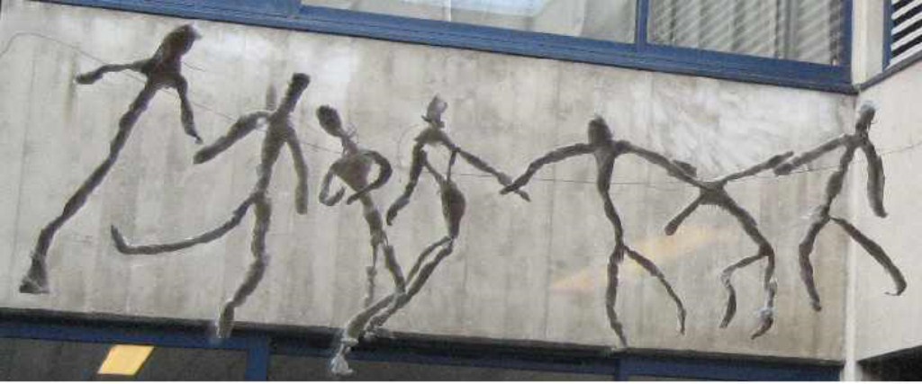 Les graffitis un art éphémère : graffitis signatures à la craie ? sur un mur ou le sol. ou grand panneau carton dans un couloir : travail sur très grand format collectif. Dossier fait § § Livres : « subway-art » et les murs de la ville.