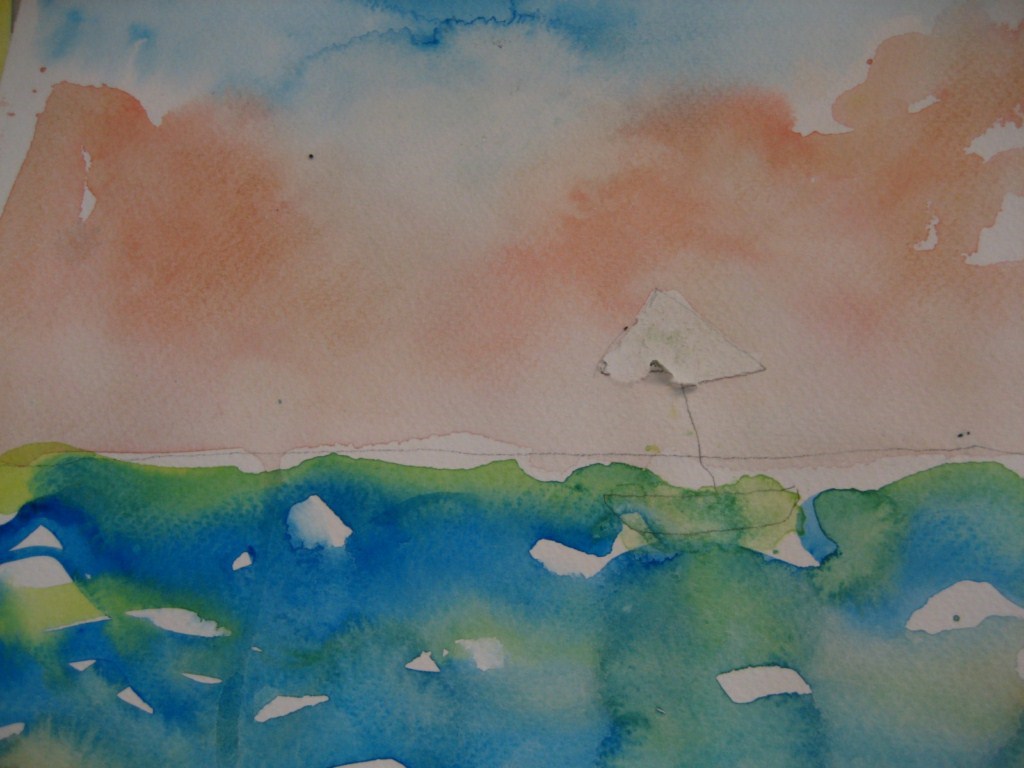 les enfants travaillent avec du vrai papier aquarelle épais type 300gr et peignent à l'eau pour voir la fusion ,les transparences et les mélanges.