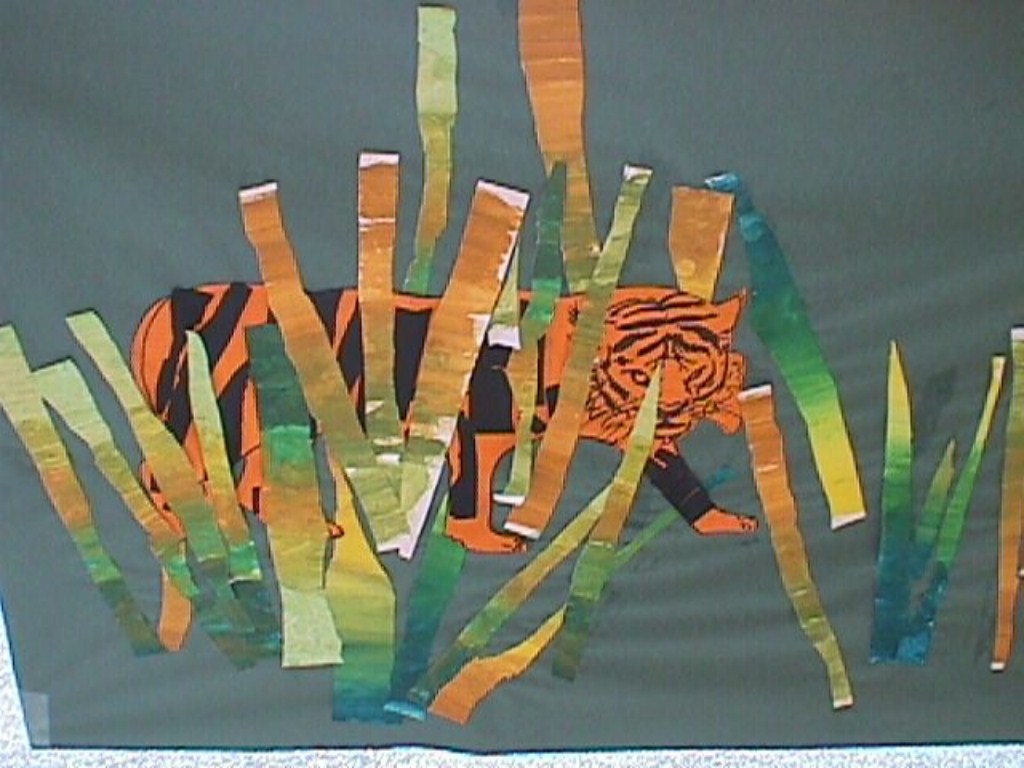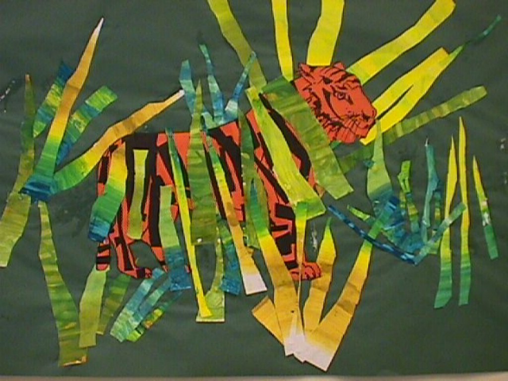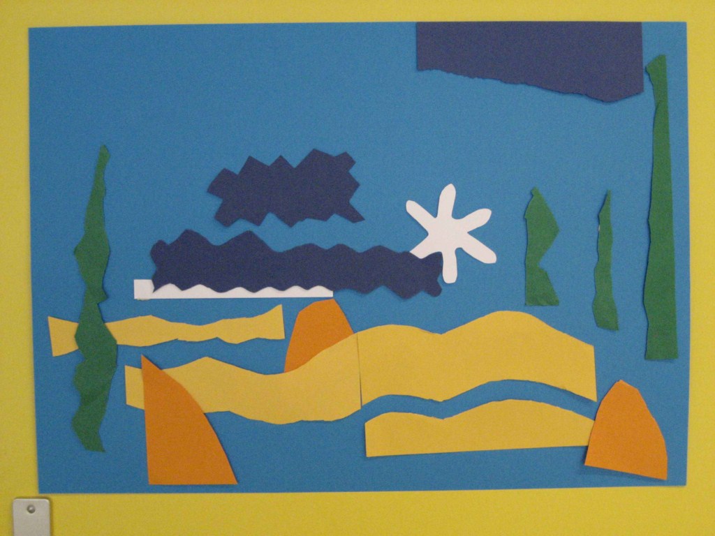 hommage à la couleur :travail avec des aplats de canson couleurs réduites et du jaune pour la lumière. transformer les couleurs normales à la manière de Gauguin –cheval pale etc …nature morte ou foret