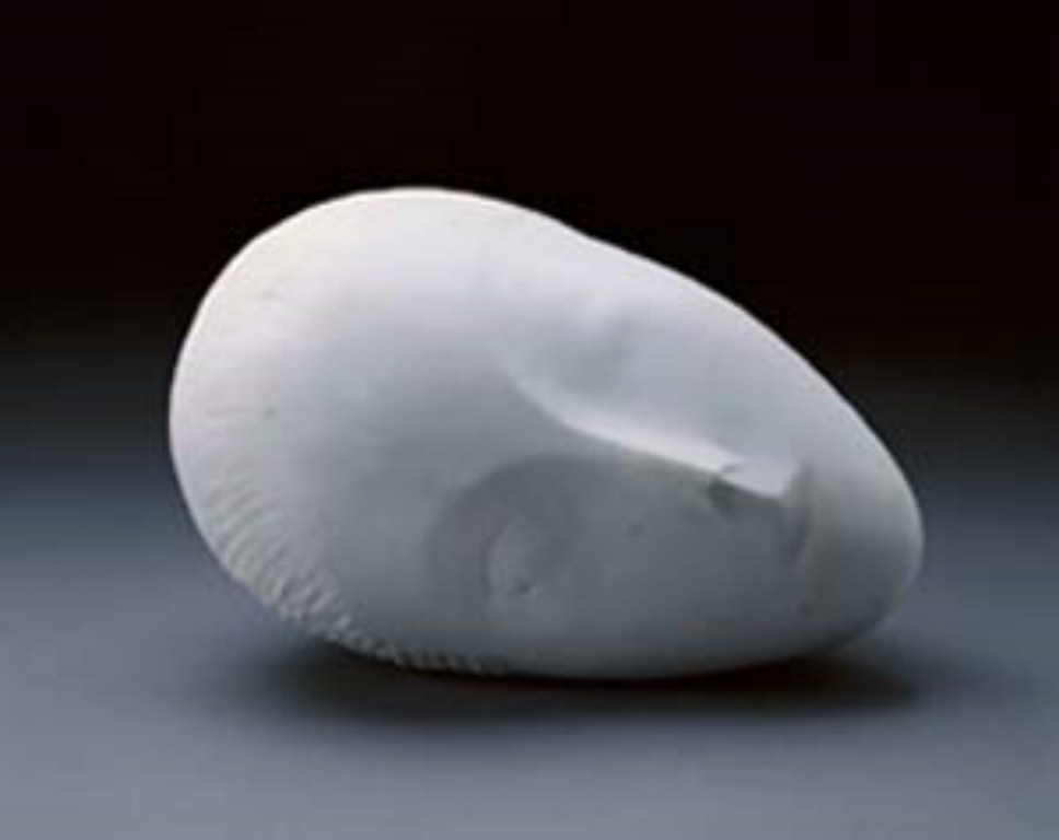 Approche de la sculpture. Modelage en terre blanche de visage sur la base de la forme d'oeuf.