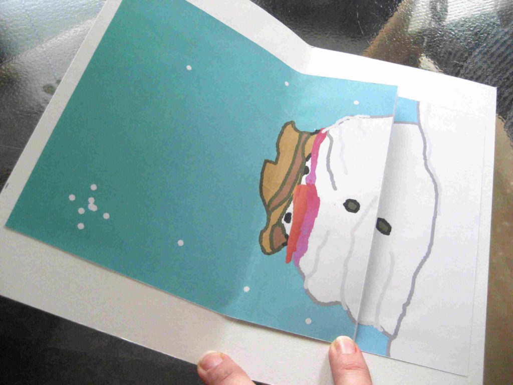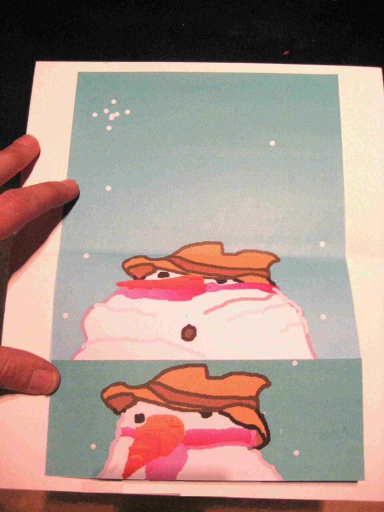 1 Coller une image complète du bonhomme de neige sur sa moitié inférieure au support page ;
