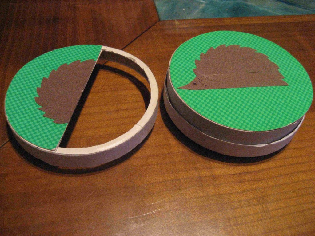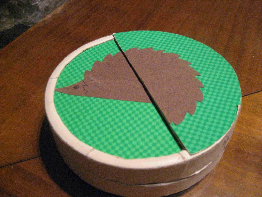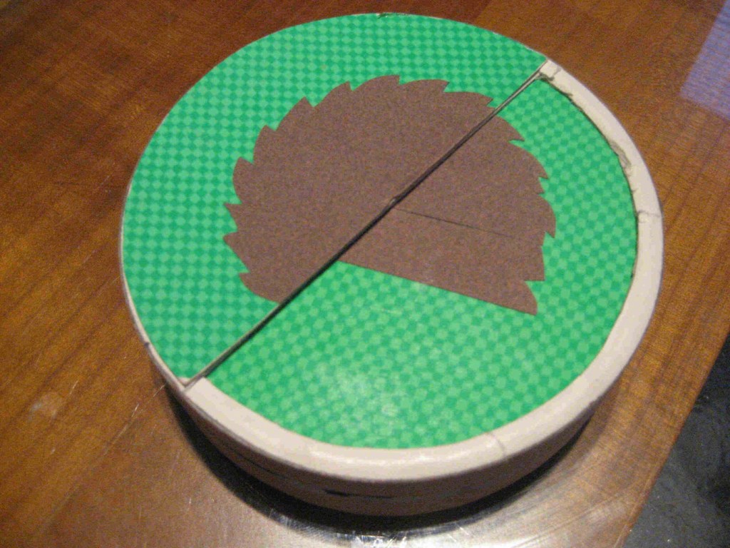 Placer ainsi la même couleur de fond sur les deux boites. Dessiner et découper 2 hérissons identiques à partir d'un demi cercle .