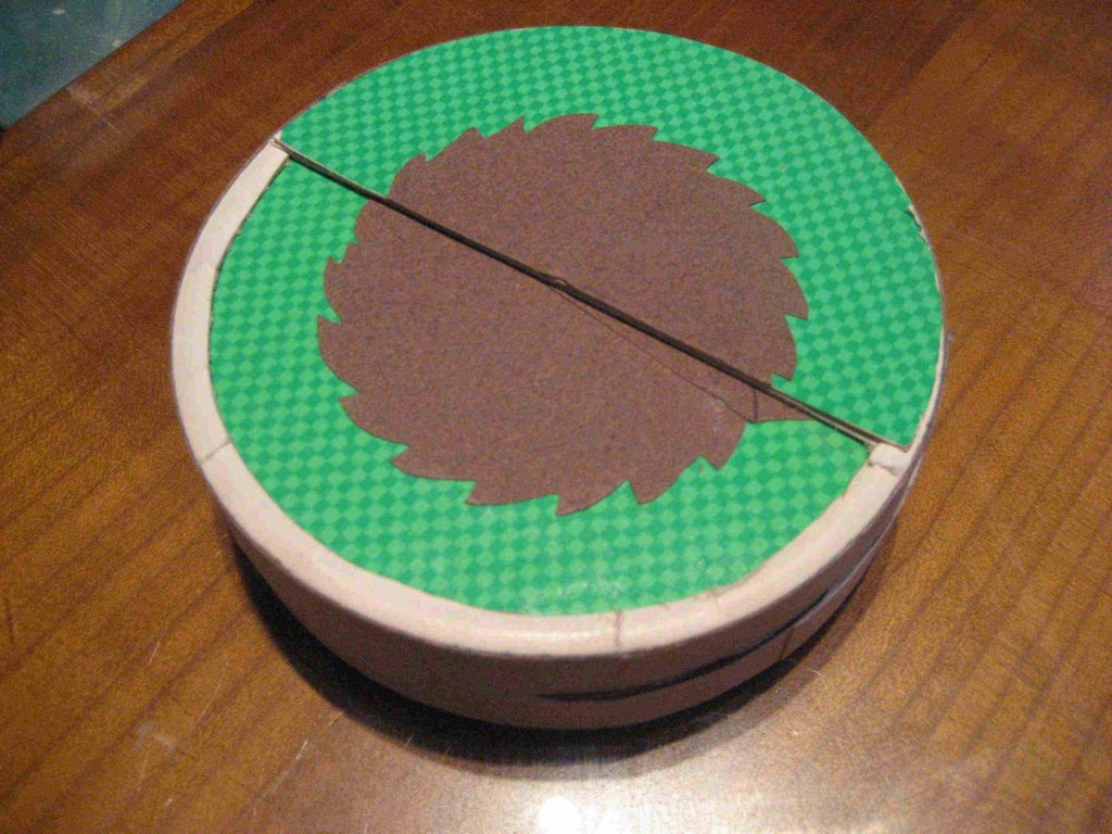 Couper alors le deuxieme hérisson en ne gardant que le "dos" soit un demi cercle :le placer au centre de la demie boite .